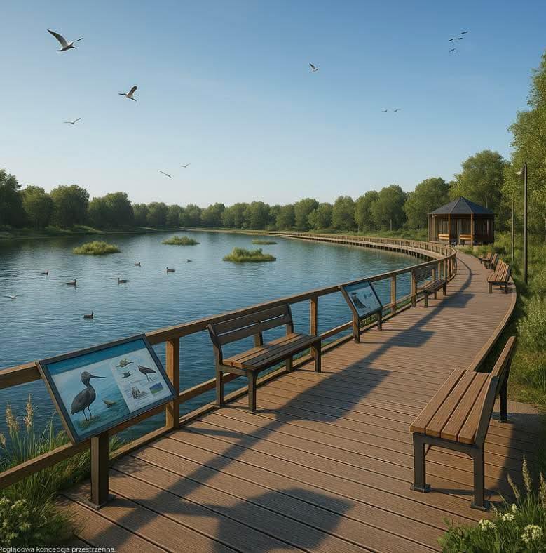 Wykonawca już rozpoczął prace projektowe, a jeśli wszystko pójdzie zgodnie z planem – już w III kwartale 2026 roku spotkamy się w nowo powstałym, zielonym sercu Łączan. A tam będzie na nas czekać nowoczesna, ekologiczna przestrzeń do spacerów i odpoczynku – z pomostami widokowymi, ścieżkami, wyspami dla ptaków, oświetleniem i zielenią.
