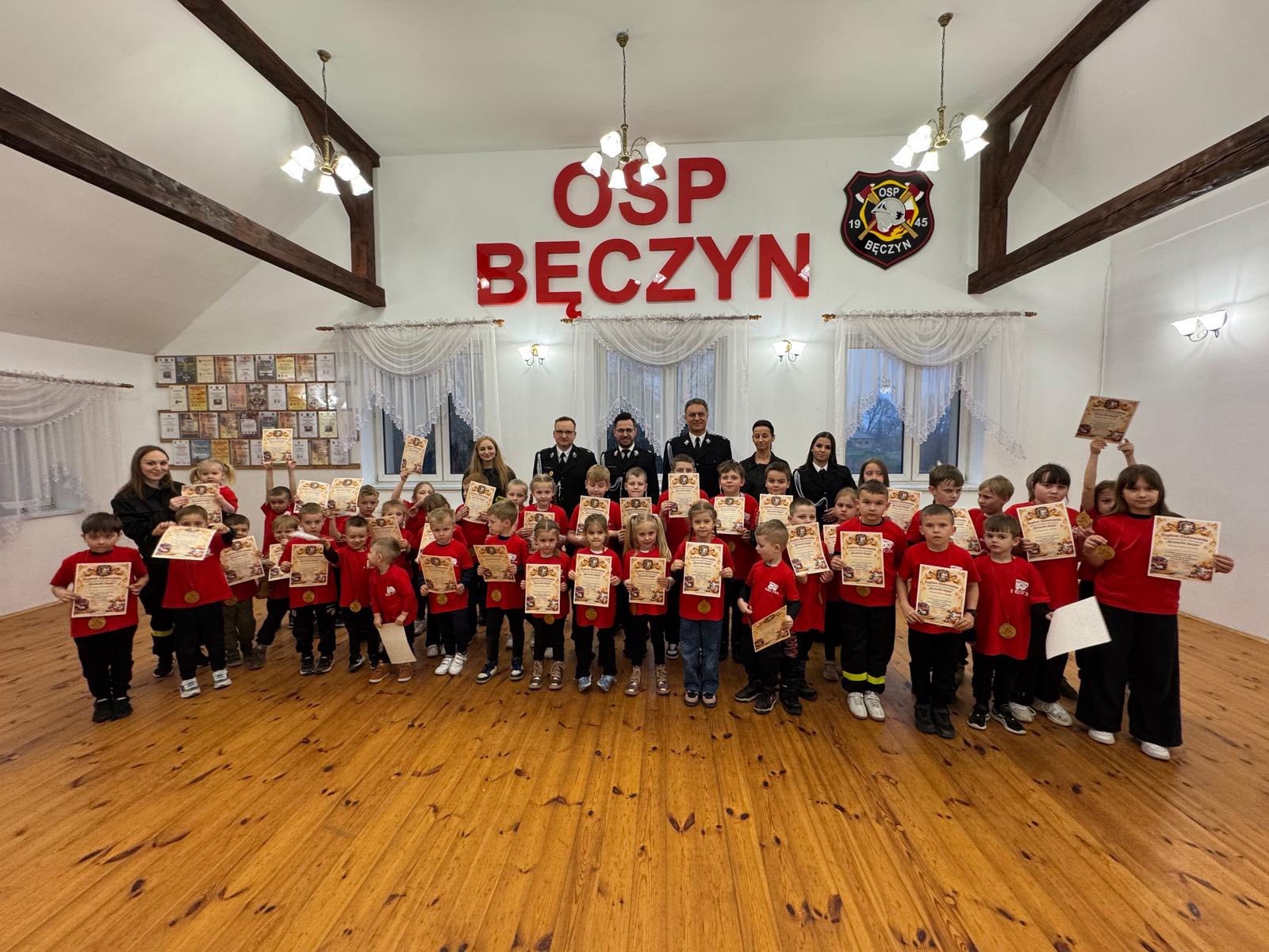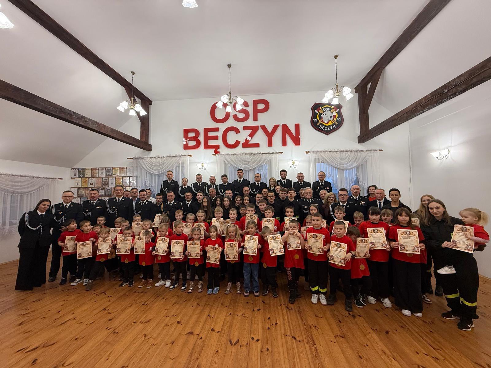 W Bęczynie odbyło się Zebranie Sprawozdawczo-Wyborcze miejscowej jednostki OSP. Spotkanie zostało zorganizowane w świeżo wyremontowanym obiekcie, który niedawno przeszedł kompleksową modernizację. Było to ważne wydarzenie, podsumowujące działalność druhów, ale również pełne wzruszających momentów.Podczas spotkania uroczyście odznaczono członków Młodzieżowej Drużyny Pożarniczej, doceniając ich zaangażowanie i rozwój w strażackich szeregach. Szczególnym wydarzeniem było także przyjęcie ślubowania przez najmłodszych - Dziecięcą Drużynę Pożarniczą „Strażackie Smyki”, która z dumą dołączyła do strażackiej rodziny.